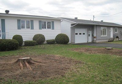 Dans certains cas, il est préférable d’éliminer la souche après l’abattage de l’arbre. Nous avons les équipements nécessaires pour broyer la souche. Cette opération, effectuée à l’aide d’équipements mobiles, permet d’enlever la souche complètement sans altérer le terrain aux alentours. La souche ainsi que les racines de surface sont broyées jusqu’à une profondeur de 12 à 16 pouces. Par la suite, vous pouvez soit replanter un arbre ou encore semer directement au même endroit.